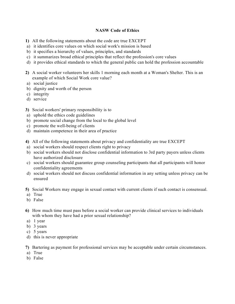 Nasw Code Of Ethics Exam For Elearning Pdf Social Work Confidentiality